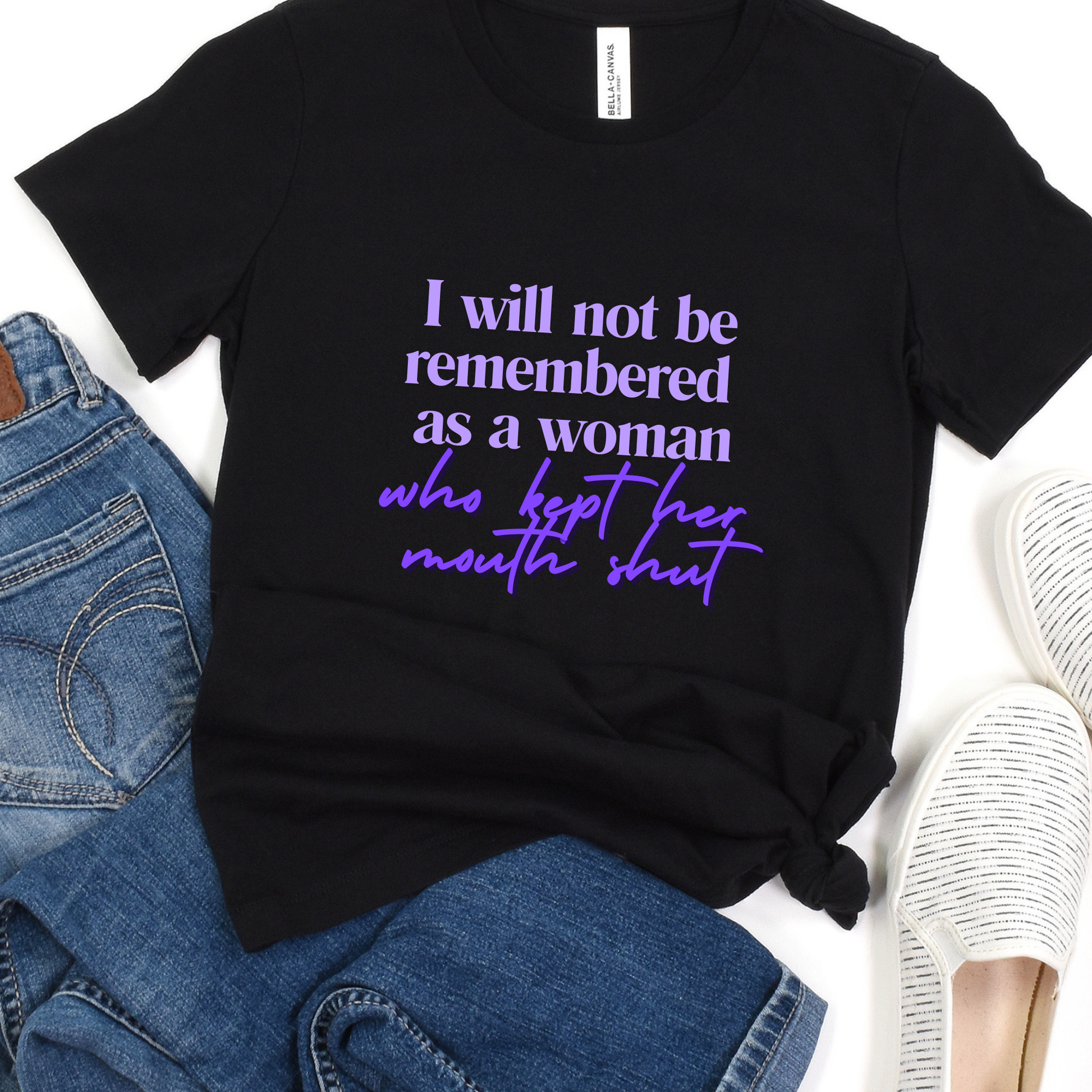 Say goodbye to keeping quiet and embrace your freedom with "Can't Keep My Mouth Shut"! This soft and comfy T-shirt is perfect for anyone who refuses to stay silent in today's political climate. Don't be known as the woman who kept quiet - wear it with pride!