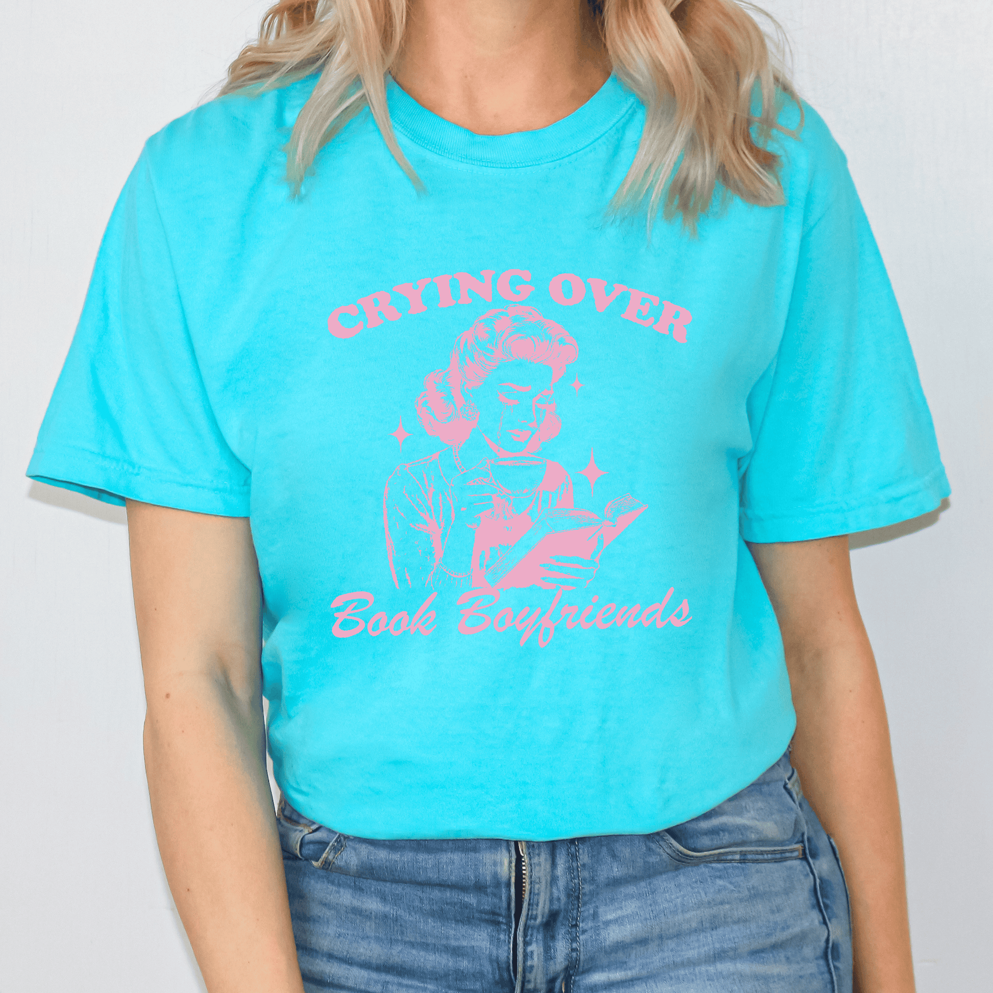 Lose yourself in the romance of reading with our Crying Over Book Boyfriends t-shirt. The vintage pink decal and striking screen-print design captures the passion of shedding tears over beloved book boyfriends. Perfect for book lovers and passionate romantics!