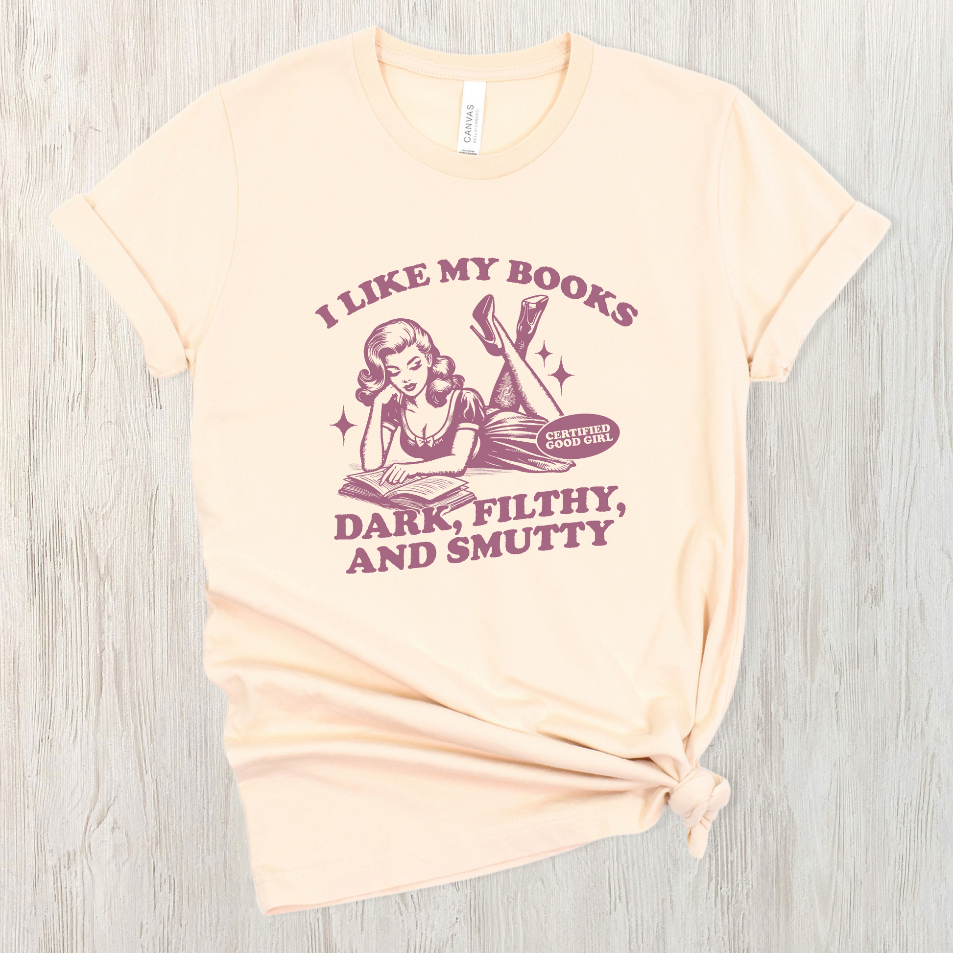 Made from soft cotton, this tee features a screen printed decal of a dark and filthy design that allows you to express your love for dark and filthy books with this soft cotton T-shirt. Perfect for the smart and quirky reader, this shirt features a unique teal or rose decal on either off-white or white fabric. Get ready to snuggle up with your favorite book and show off your love for literature! This is perfect for spicy book readers. Fulfill your cravings for both comfort and smut in one stylish shirt.