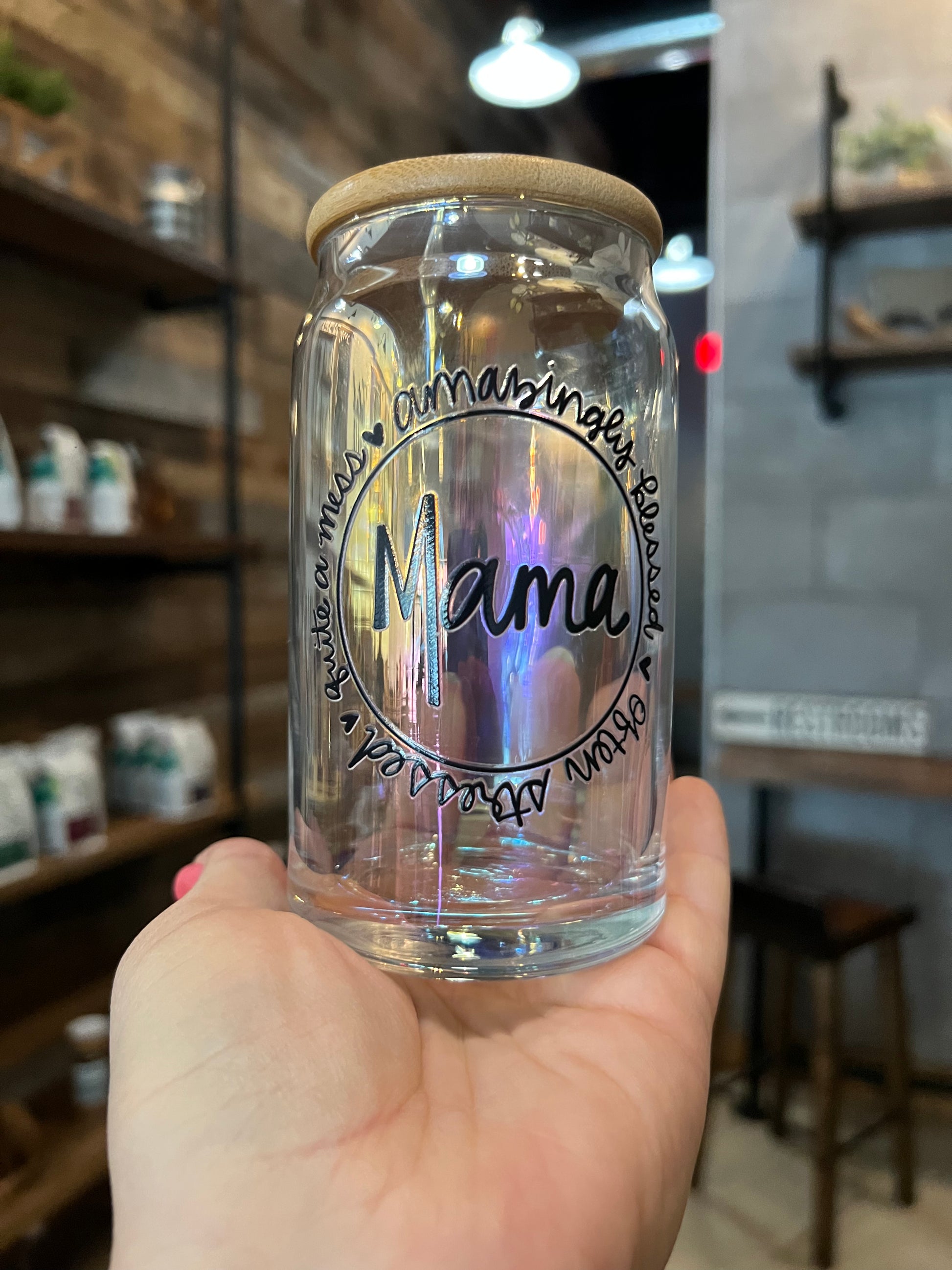 Feeling mamariffic? Get the JASN Mama Decal Cup and flaunt your mama pride with this one-of-a-kind, handlettered decal on an iridescent glass—it's stunning! Drink your favorite beverage and have a ball. Mama got game!