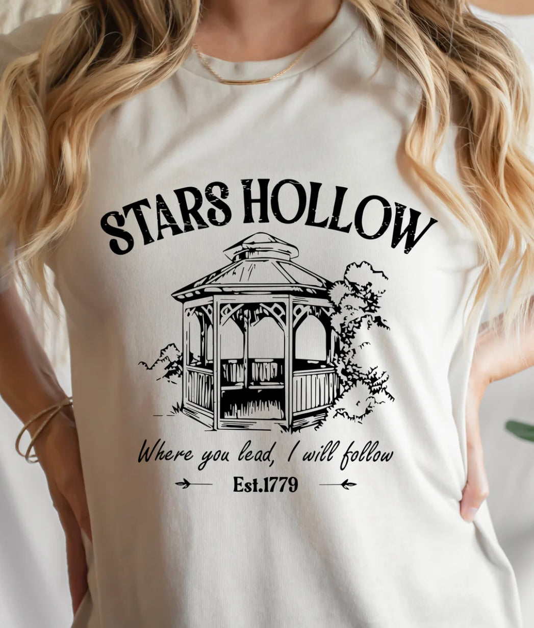 Experience the charm of Stars Hollow, CT with this soft tee! As a Gilmore Girls fan, you'll love the natural softness of the cotton and the tribute to the iconic TV show with the phrase "Where you lead, I will follow." Perfect for cozy days or showing off your fandom!